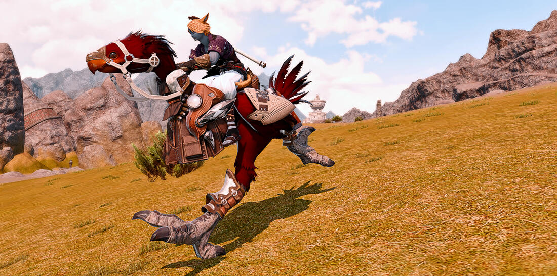 But even thought this world isn't my home, it sure has a lot to explore! The people here travel on Chocobo! Very loyal and kind creatures! I purchased a red one which brings me far and fast over sticks and stones.